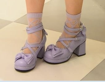 Features: Round toe, platform shoes, chunky heels, crossover strap, belt buckle, bow on front and back, handmade Lolita tea party shoes. Multiple sweet colors are available which can match any lolita dress perfectly.