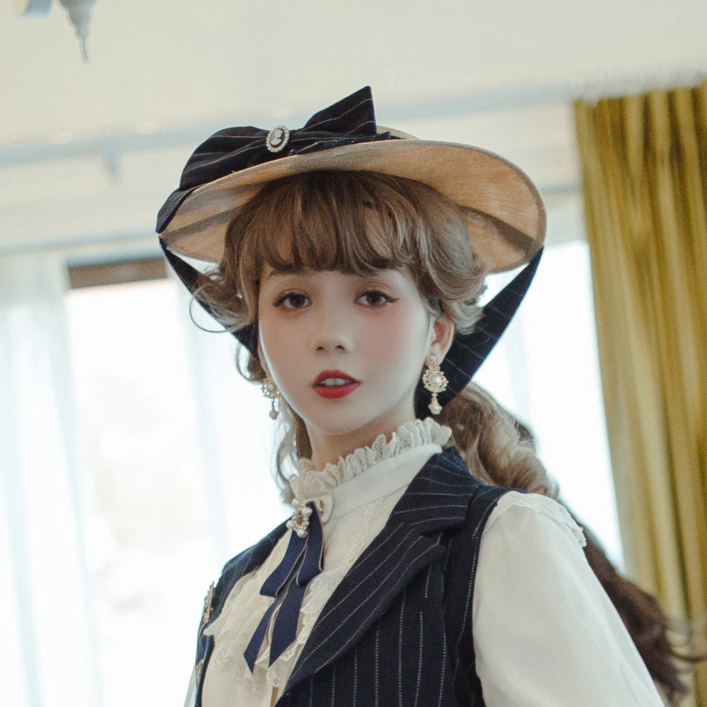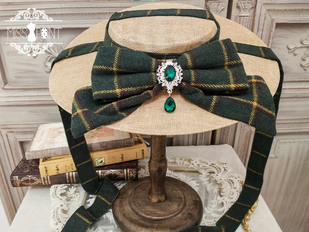 Features: Classic Lolita style, a large bow on the top with crossover straps, delicate metal decoration, cameo, colorful ruby at the center. It's retro and classic.
